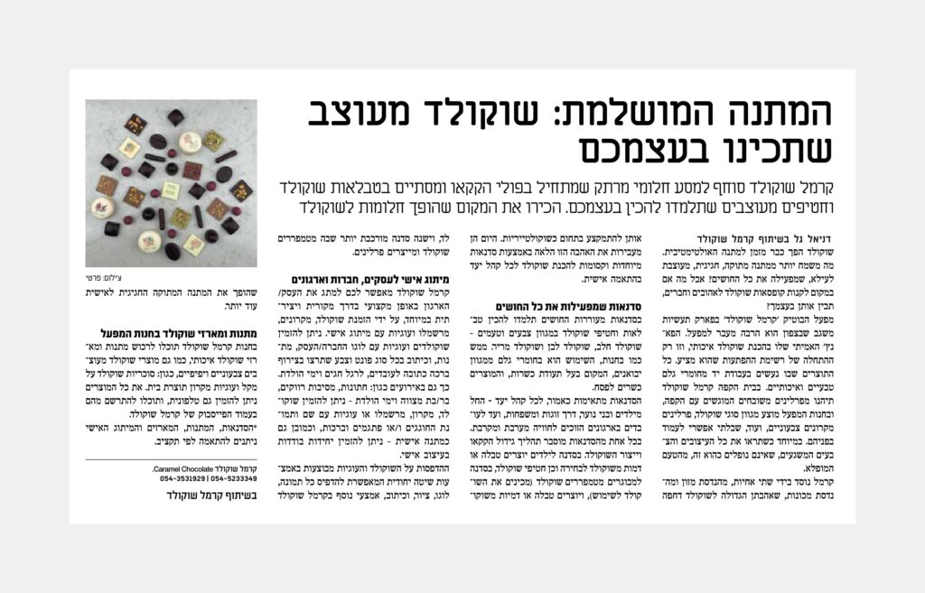 עוד סיפרו שם על הסיפור שלנו – שתי אחיות שהגיעו מעולמות ההנדסה, והפכו אהבה גדולה לשוקולד לעסק שמביא יצירה, טעם וחוויה לאנשים מכל הארץ.