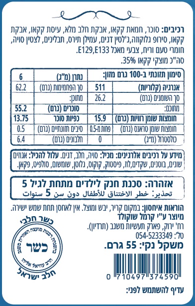 עשוי להכיל עקבות של אלרגנים נפוצים, כגון סויה, חלב, אגוזים וגלוטן.